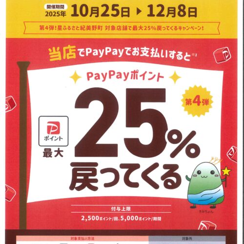 ペイペイポイント25%※戻ってくるキャンペーン開催されます♪