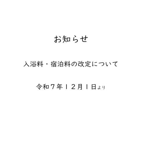 再度のお知らせ 12月より、宿泊料、入浴料が変更となります。